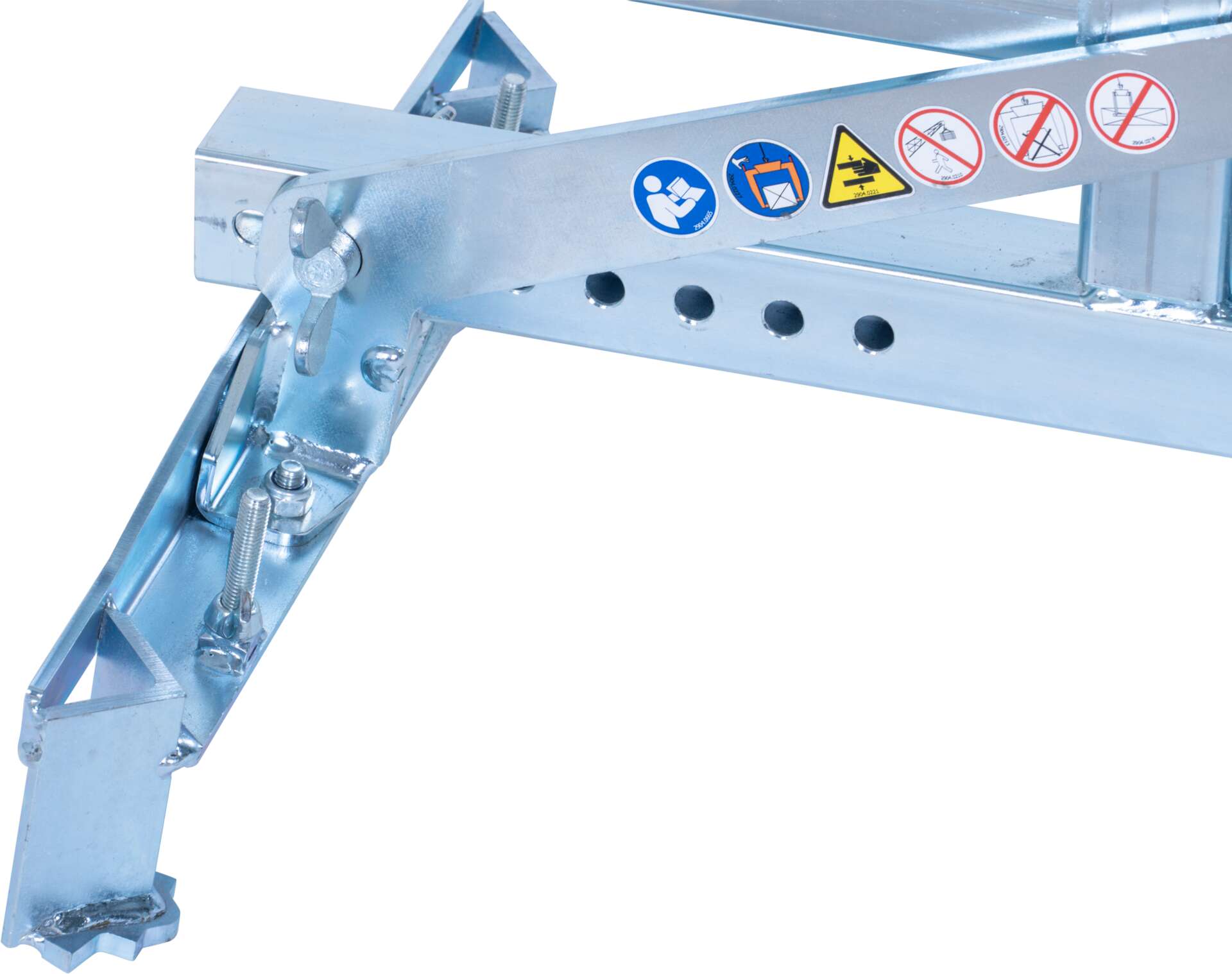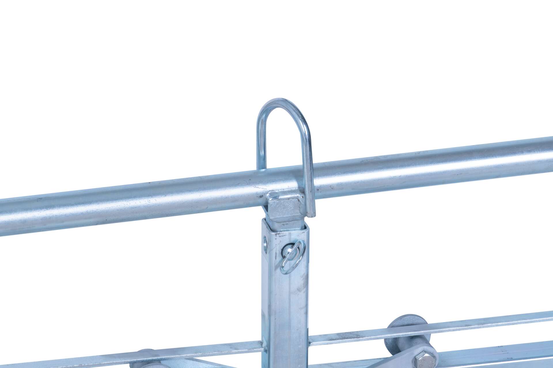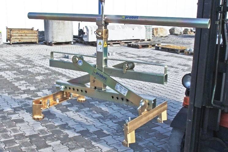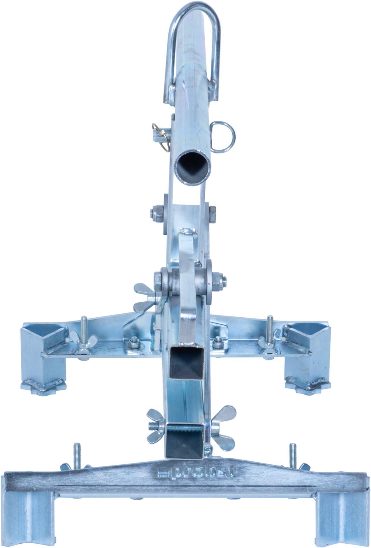 Aufnahme der Geräte mit den Staplerzinken, mit Arretierung auf den Zinken.Abstand zwischen den Glocken 20 mm.Mehrpreis für eine Polyamidbelegung zur schonenderen Behandlung der Rohre auf Anfrage.