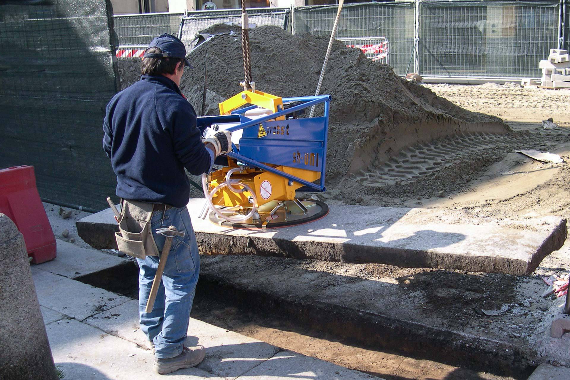 Mit dem Vakuum-Handverlegegerät SPEEDY VS-140/200 lassen sich alle Arten von Platten schnell und vor allem körperschonend fugenlos verlegen