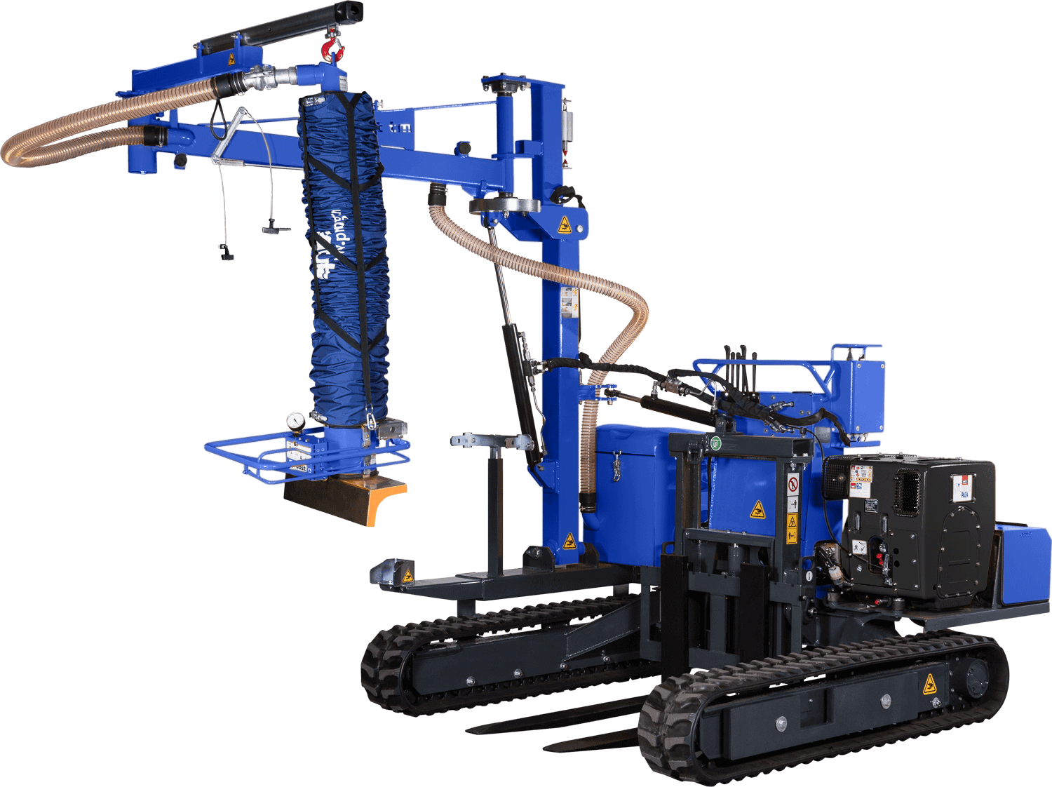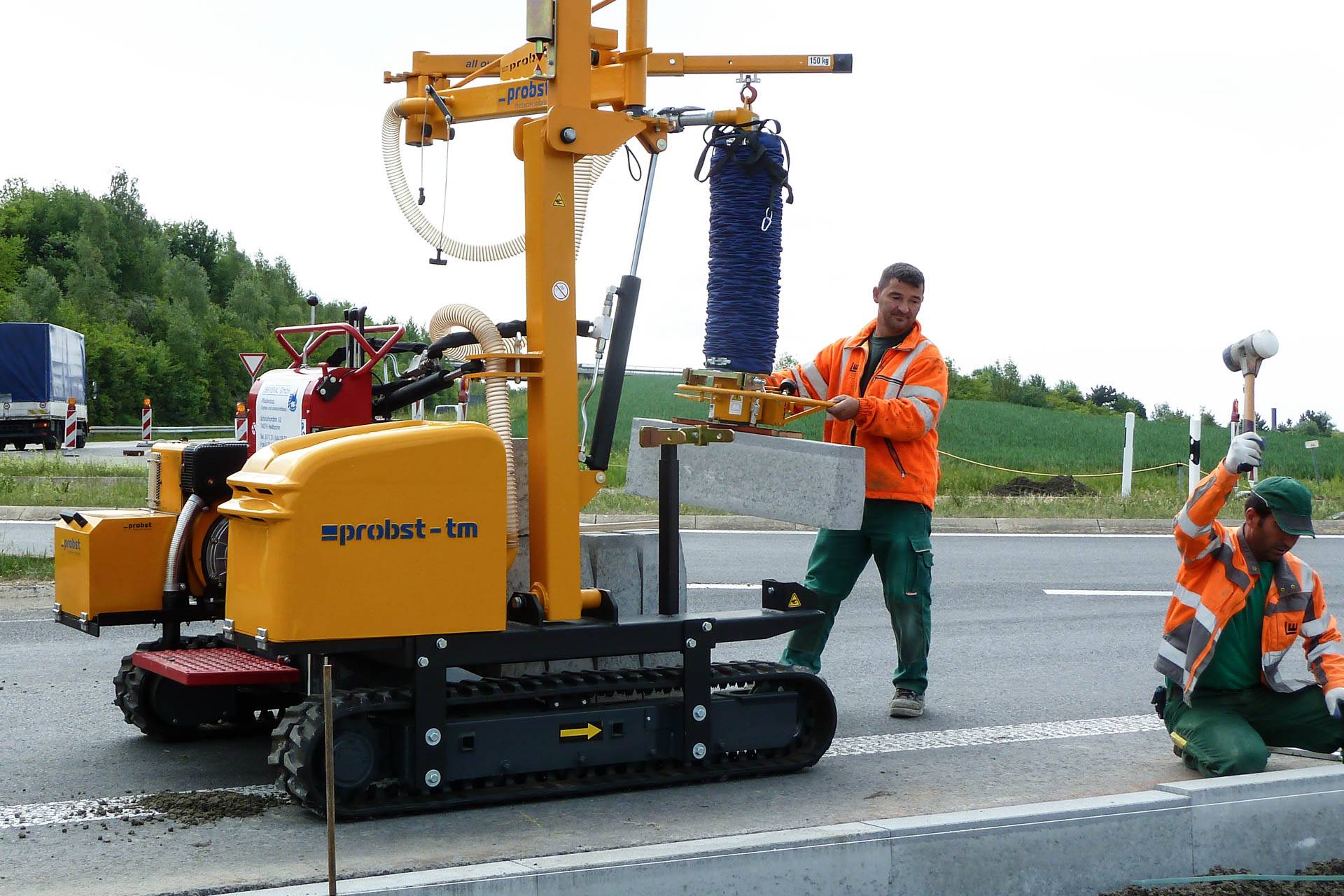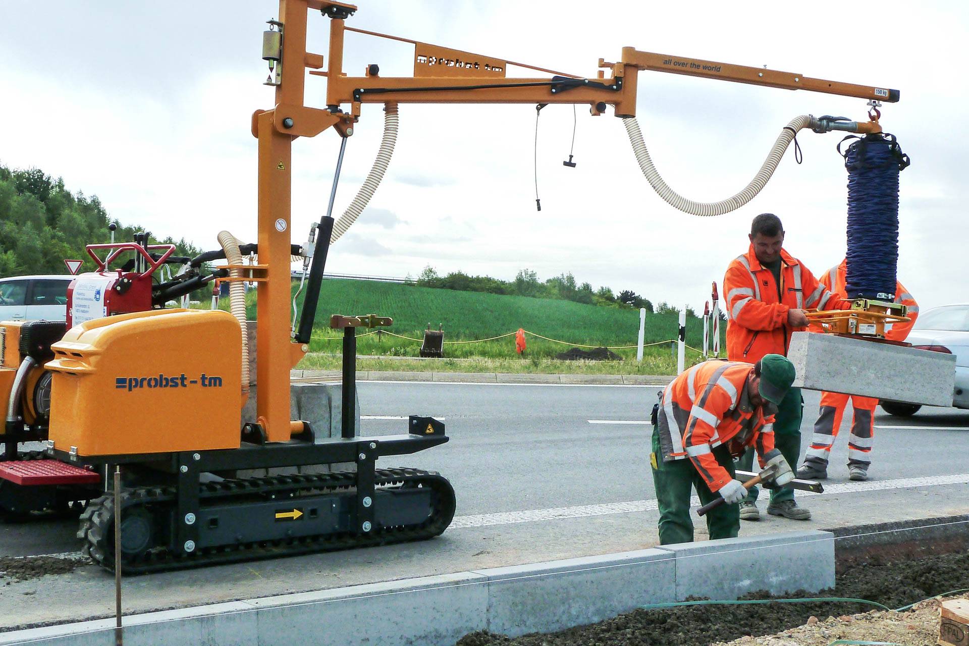 Die leistungsfähige Vakuum-Verlegeeinheit erlaubt die sofortige Verlegung der schweren Bauelemente rückenschonend und federleicht.