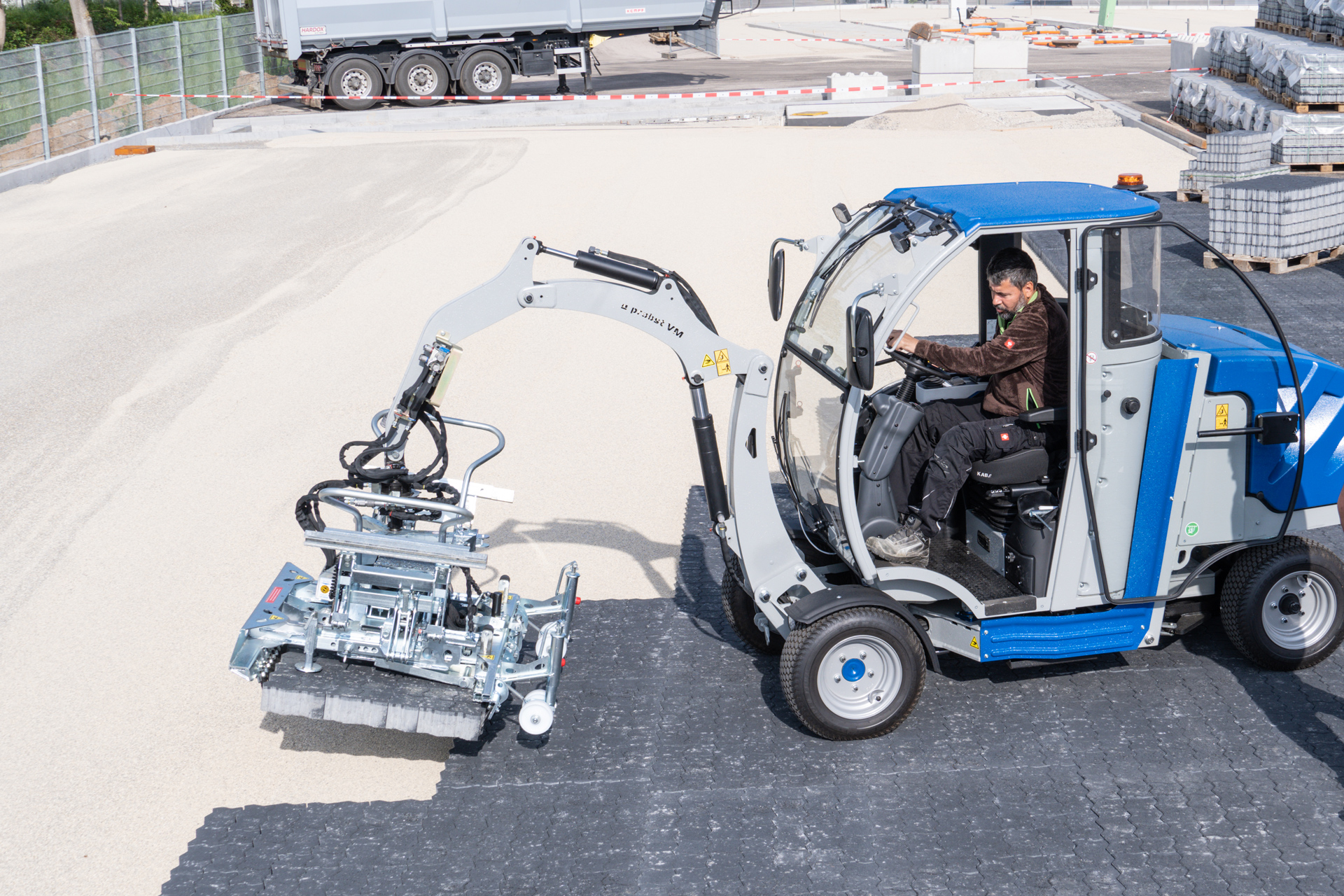 Damit auch große Verlegeprojekte ermüdungsfrei und konzentriert erledigt werden können, ist die VM-X-PAVERMAX mit zahlreichen Komfort-Features ausgestattet. Von der geräumigen, entkoppelten Kabine bis zu den großvolumigen Breitreifen und der Pendelbremse in Fahrtrichtung: Die VM-X-PAVERMAX verbindet maximale Laufruhe mit einem besonders angenehmen Fahrgefühl.