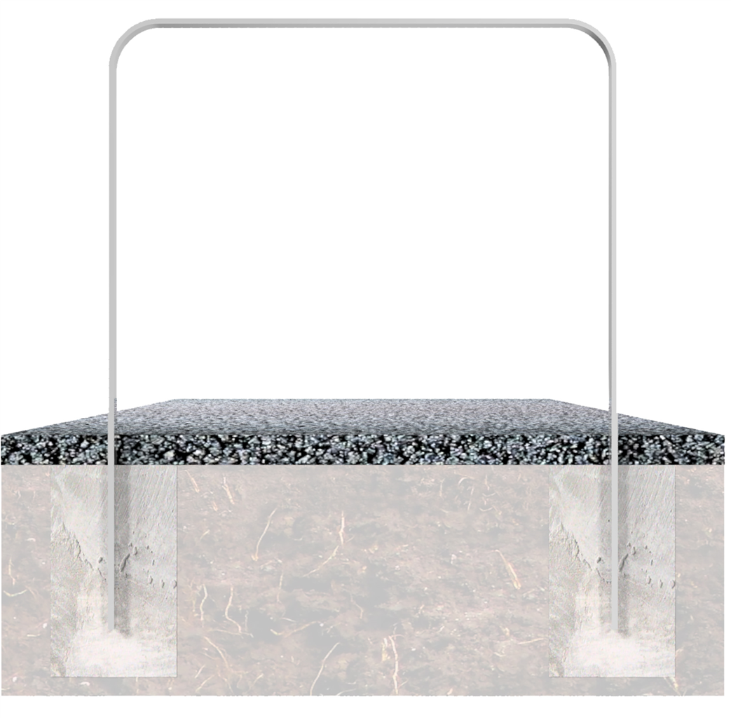Anlehnbügel aus Flachstahl zum Einbetonieren, feuerverzinkt und optional pulverbeschichtet in DB 703, Gesamthöhe ca. 1200 mm, Flachstahl 80 x 12 mm, mit Querholm, Gesamtbreite: 750 mm, feuerverzinkt