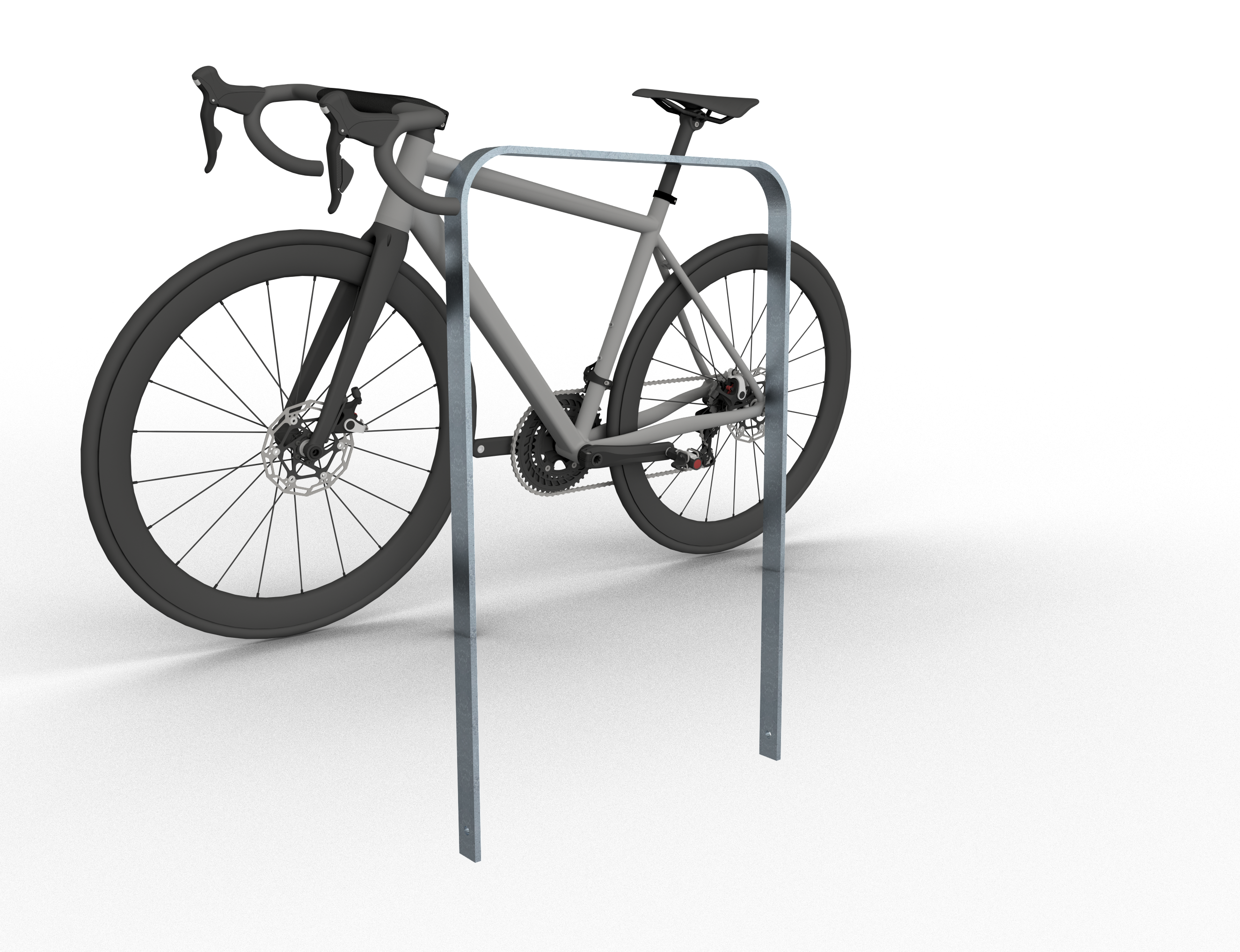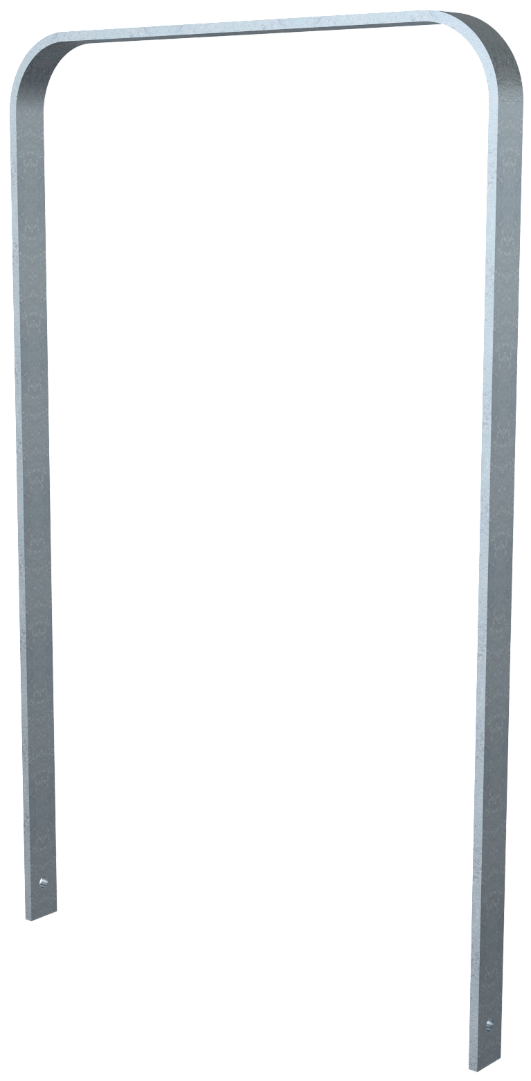 Flachstahl 80 x 12 mm, Anlehnbügel in gebogener Ausführung, zum Einbetonieren, feuerverzinkt und optional pulverbeschichtet in DB 703, Gesamthöhe ca. 1200 mm, ohne Querholm, Gesamtbreite: 750 mm, feuerverzinkt
