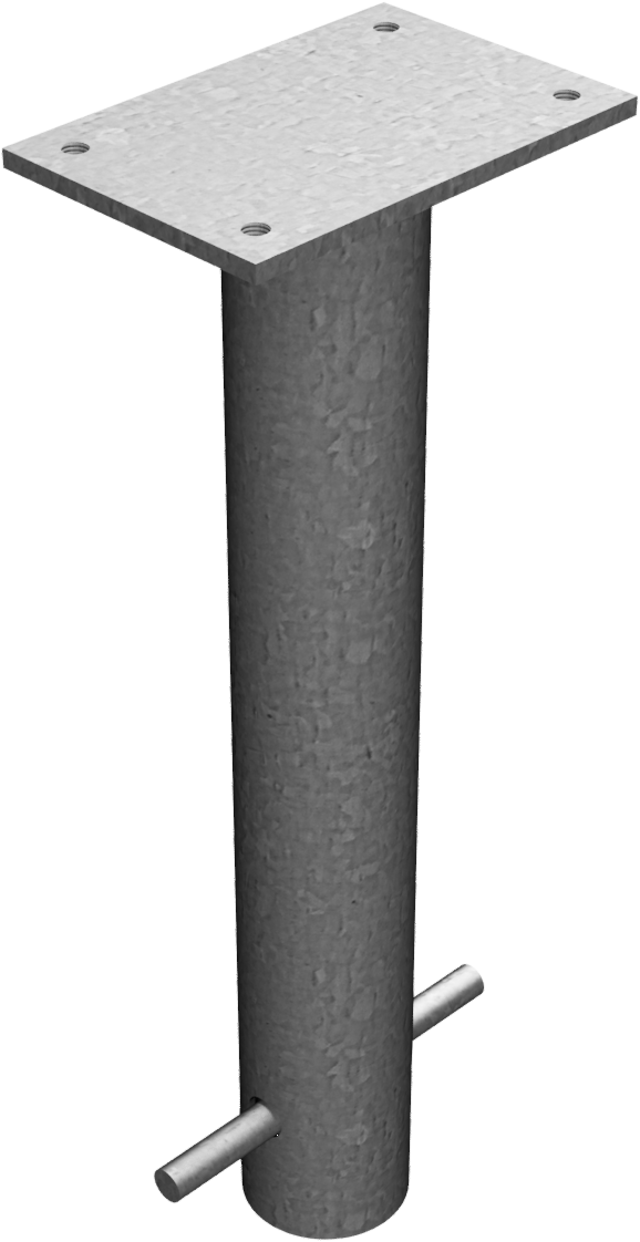 Absperrpfosten, Stahlrohr Ø 76 x 2,6 mm, mit aufgeschweißter Stahlkappe, 900 mm Überflur, herausnehmbar, mit Dreikantverschluss nach DIN 3223, selbsteinrastende Verriegelung, mit Bodenhülse Typ 476.40, ca. 400 mm Unterflur, feuerverzinkt, ohne Öse