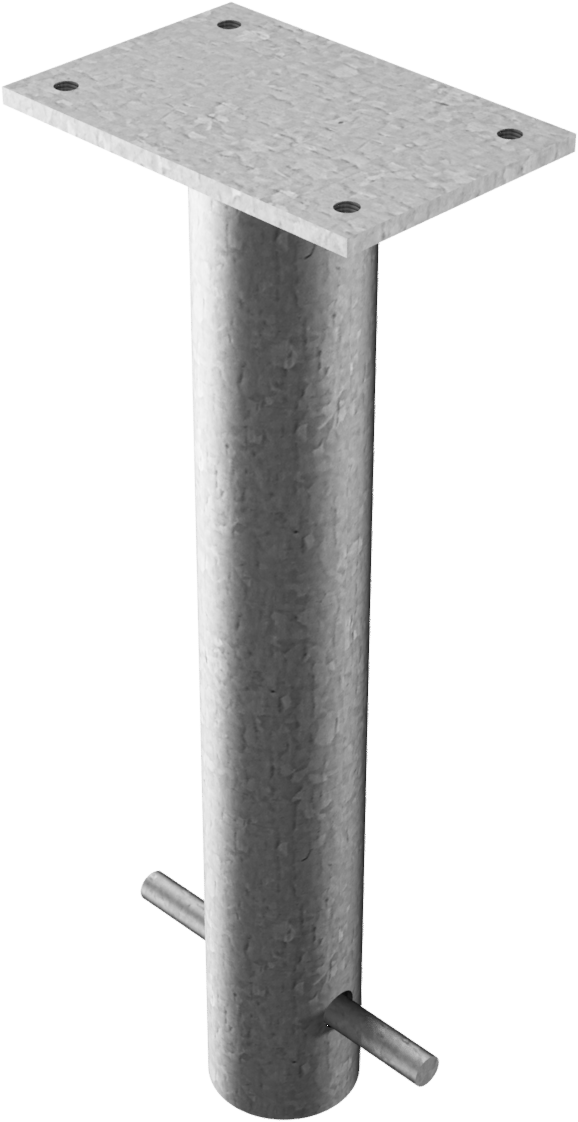 Stilpoller aus Vierkantstahlrohr 70 x 70 mm, mit Flachkopf, ca. 900 mm Überflur, feuerverzinkt und DB 703 beschichtet, ortsfest, zum Einbetonieren, mit Erdanker, Gesamtlänge ca. 1300 mm