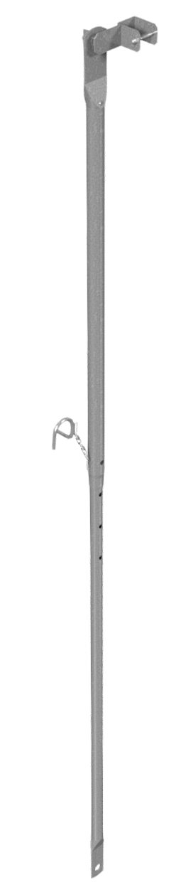 Diagonalverstrebungen, werden zum Aussteifen von Kurbel- oder Universalgerüstböcken verwendet. Die Aussteifung wird mit der Bohrung am Ende des Innenrohres in die korrespondierende Konstruktion am Obergestell des Kurbel oder Universalgerüstbocks eingehängt und am anderen Ende mittels Schelle am Fuß des 2. Kurbel- oder Universalgerüstbocks verschraubt. Die Verbindungsschelle ist im Artikel mit enthalten. Die gesamte Verstrebung ist im Bereich von 2,00 m - 2,60 m teleskopierbar und wird mittels unverlierbarem Steckbolzen gesichert