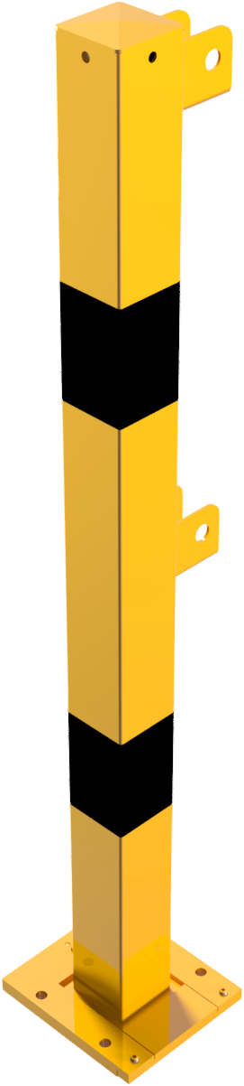 Schutzgeländer zum Aufdübeln Stahlrohr 70 x 70 mm mit Ober- und Knieholm Stahlrohr 60 x 40 mm, Höhe ca. 1000 mm verschraubbar Standpfosten abnehmbar für vorübergehende Öffnung von Zugängen, Standpfosten mit Bodenplatte 150 x 180 mm, zum Aufdübeln, Mittelpfosten für Ober- und Knieholm