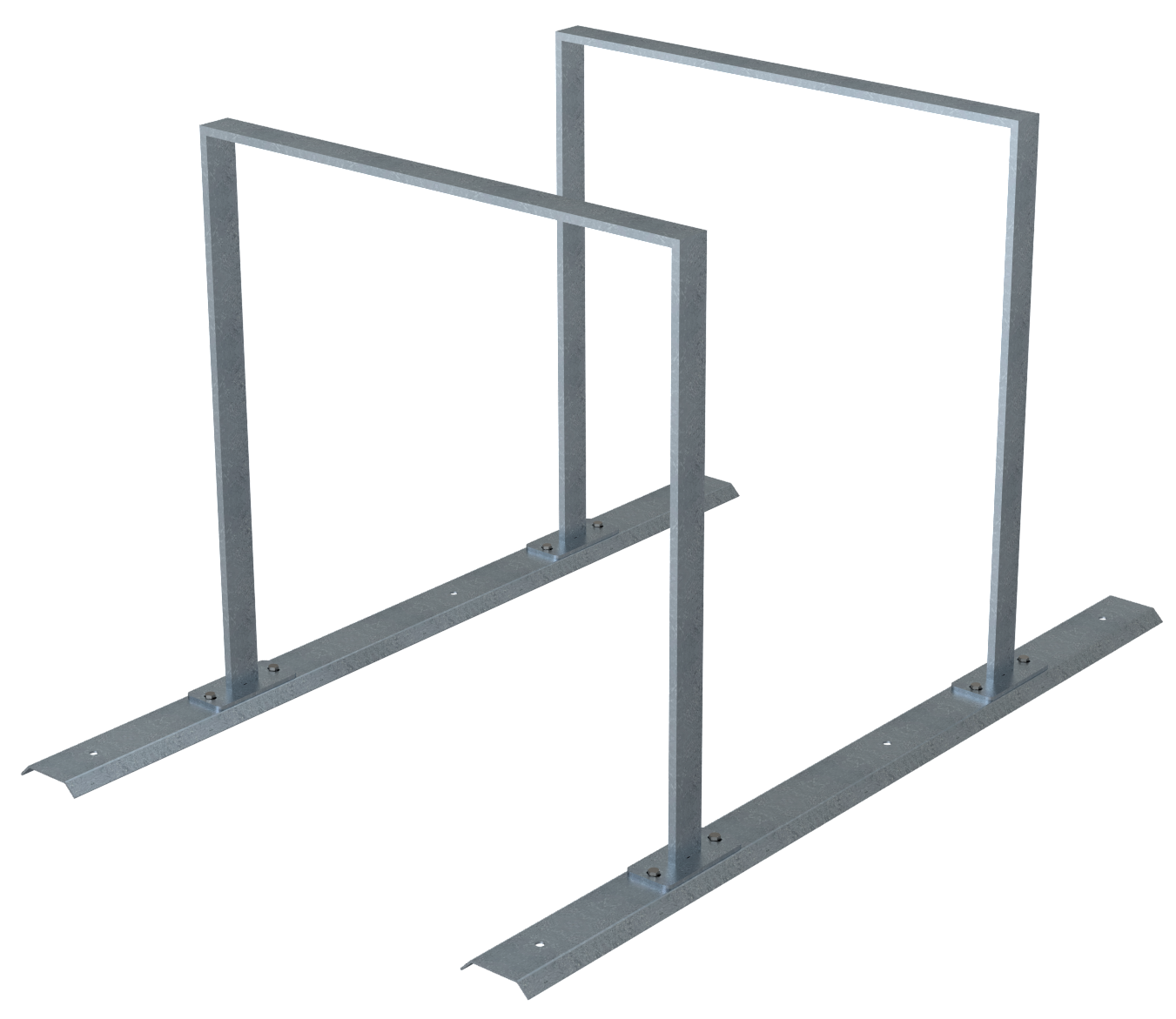 Fahrradständer als Reihenanlage mit Schienensystem für Anlehnbügel aus Flachstahl (50 x 12 mm) zum Aufschrauben, Höhe: 800 mm, Breite: 800 mm, Radabstand: 700 mm, feuerverzinkt, 2 Einstellplätze