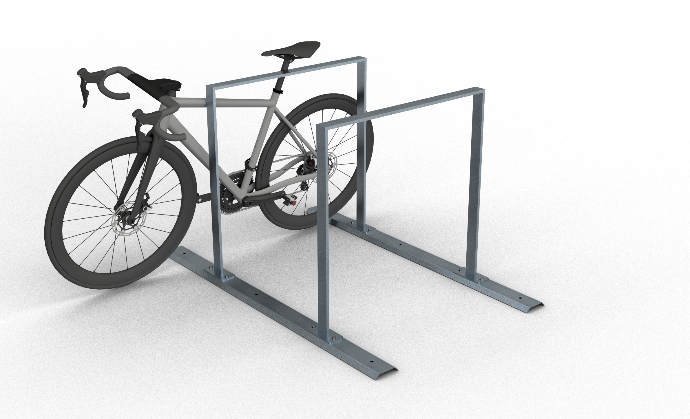 Fahrradständer als Reihenanlage mit Schienensystem zum Aufschrauben, Anlehnbügel als Rundbügel (Ø 48 mm), Höhe: 800 mm, Breite: 460 mm, Radabstand: 700 mm, feuerverzinkt, 2 Einstellplätze