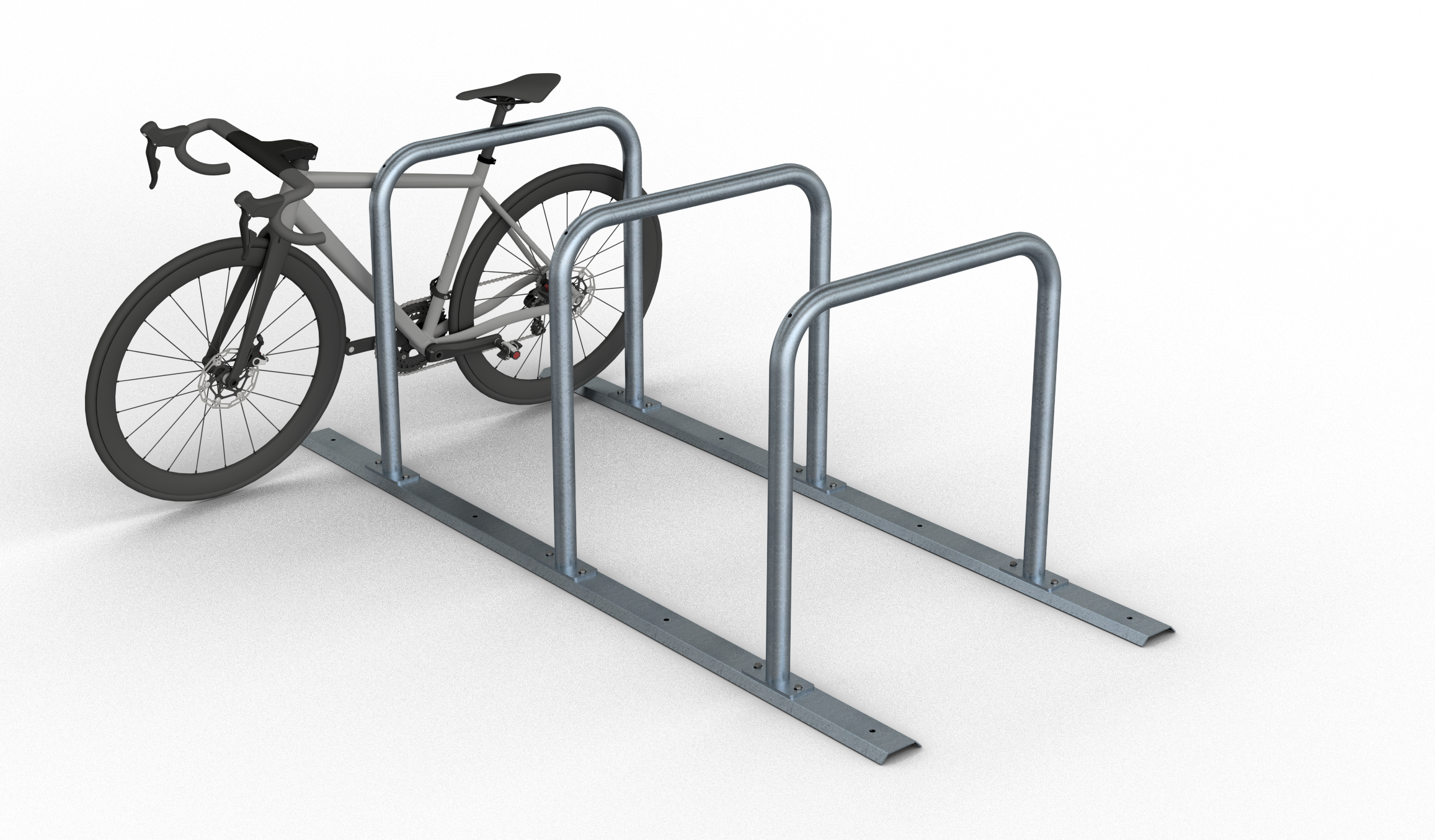 SCHAKE Fahrradanlehnbügel Reihenanlage Stahlrohr Ø 48 mm - 3 Einstellplätze