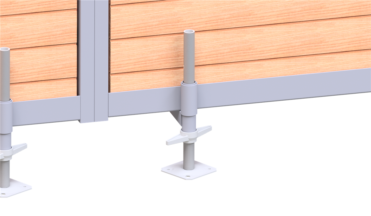 Höhenausgleicher, für unebenes Gelände, neigbar einfaches Einstecken der Höhenausgleicher ermöglicht waagerechte Aufstellung, Höhenverstellbereich: 100 - 350 mm, Grundplatte: 150 x 150 mm