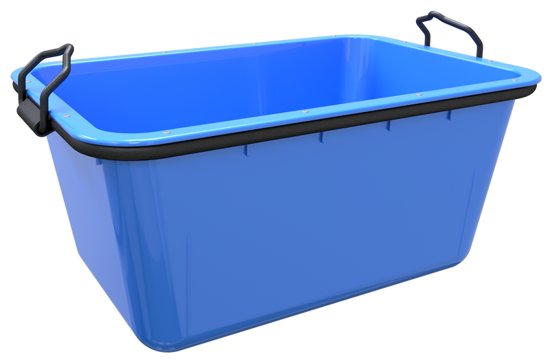 Mörtelwanne 200 ltr.Für den Transport von Mörtel und anderen Materialien auf der Baustelle.·verschiedene Farben·200 ltr.·aus robustem und schlagzähem HDPE (High Density Polyethylen)·mit hoher Dichte UV-stabilisiert·mit beschichtetem Stahlrahmen·kran- und stapelbar·Nennlast 500 kg·Maße: 1050 mm x 705 mm x 490 mm