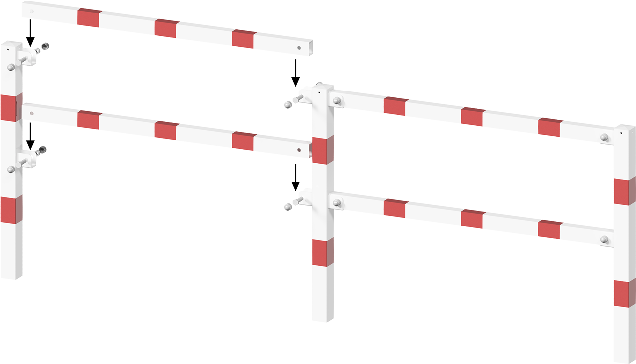 Oberfläche: | feuerverzinkt und weiß beschichtet mit rot reflektierenden Streifen |