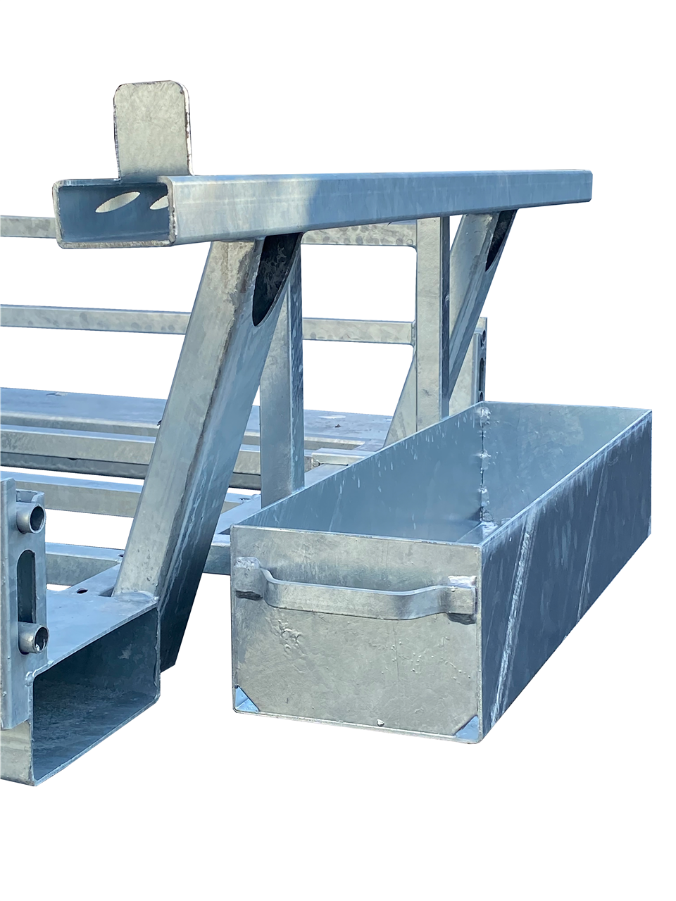 mit rechteckiger Tiefmulde verzinkt mit extra verstärktem Rundeisen-Rand · Rahmen aus komplett geschweißter Stahlkonstruktion mit Kippbügel und Muldenabstützung vorne sowie Fußverstärkung · Kunststoff-Handgriffe · montiert Bei der Herstellung der Mulden können beim Tiefziehprozess Schleifspuren und leichte Wellungen auftreten. Ebenso sind Lackschäden kein Reklamationsgrund!