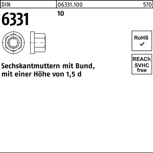 Eigenschaften "Sechskantmutter DIN 6331 Bund M24 SW 36 10 1 Stück"