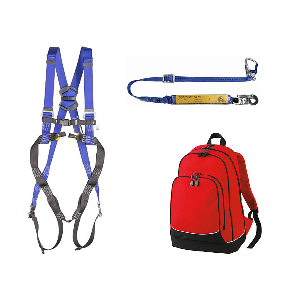Das ARTEX Auffangsystem Dachdecker-Set 1909 mit 10 Metern Länge ist ein umfassendes Sicherheitsset für Dachdecker. Es besteht aus einem verstellbaren Auffanggurt AX 20 mit Auffangösen im Schulterbereich und Auffangschlaufen im Brustbereich, einem mitlaufenden Auffanggerät ASK 1 mit Bandfalldämpfer und einem 12 mm Kernmantelseil. Zudem enthält das Set eine 2,0 m kantengeprüfte Anschlagschlinge und einen robusten PSA-Gerätekoffer aus Stahlblech. Geeignet für Benutzer bis 120 kg, bietet das Set sicheren Schutz bei Arbeiten auf Steil- und Flachdächern, Leitern sowie an Fenstern und Fassaden.