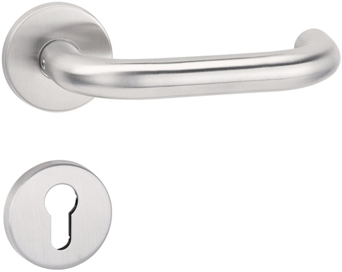 Klasse 4 nach EN 1906 · Edelstahl · fest/drehbar mit Rückholfeder · Metall-Unterkonstruktion · Türdrücker fest / drehbar gelagert auf Metall · Kunststoff-Unterkonstruktion für optimale Absorbierung axialer und radialer Kräfte bei vielbegangenen Türen · modernes Rosettendesign, unsichtbar verschraubt Weitere technische Eigenschaften: · Nockenabstand: 38mm · Befestigungssystem: Profilstift