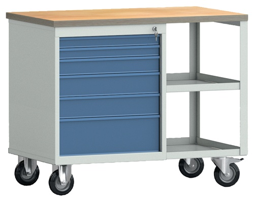 TECWERK Werkbank Serie BK 650 lichtgrau / enzianblau 5 Schubladen
